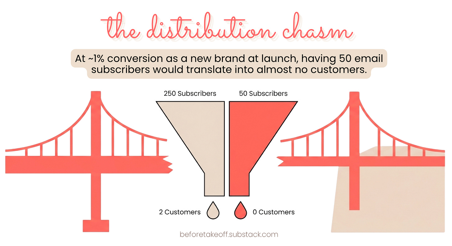 If as a new brand, you need 250 subscribers of convert 2 customers at launch, and your mailing list is only 50, mathematically the first customer just can’t be born.